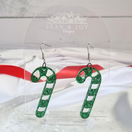 Candy Cane Crush Green Glitter Earrings" πβ¨