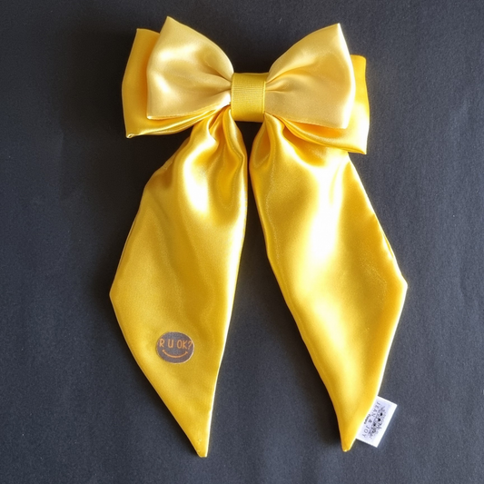 Yellow Satin Double Bow with tails - R U Ok mental health awareness accessories